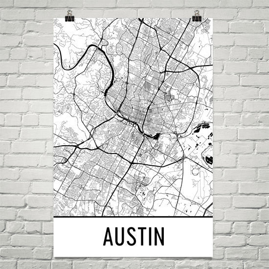 Austin Texas Street Map Poster Wall Print by Modern Map Art